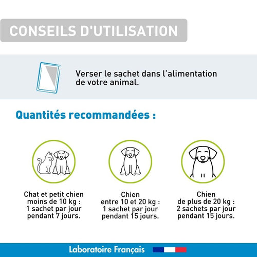 • Chien de plus de 20 kg : 2 sachets par jour pendant 15 jours.
